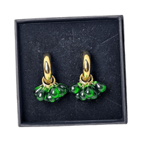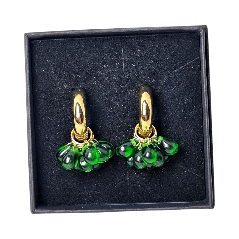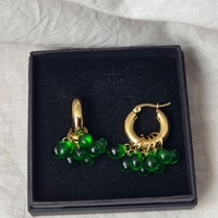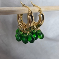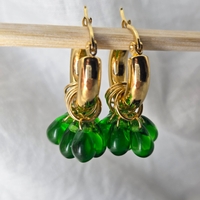 Käsintehdyt lasihelmistä. Renkaat 18k kullattua terästä.
