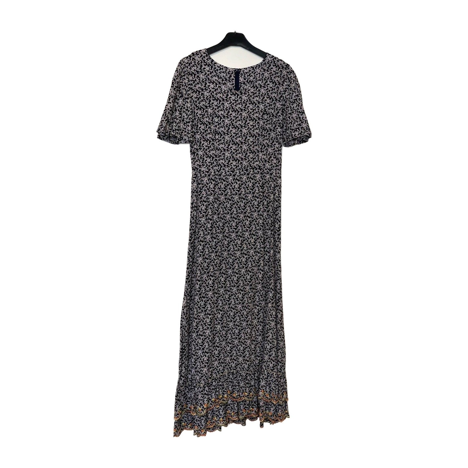 Tummans./musta valkokukallinen maximekko perhoshihoilla 🦋 helmassa kaunis kirjailu. Merkki Salonne, Salo. Ehkä 70-luku? Koko 36, mutta ennemminkin xs.