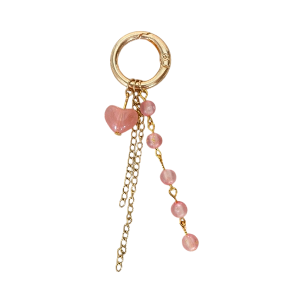Käsintehty avaimenperä/laukkukoru vaaleanpunaisilla helmillä ja sydämellä💗