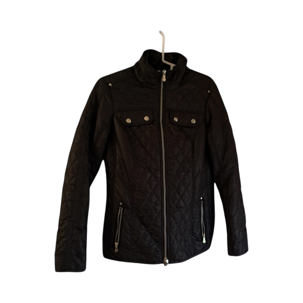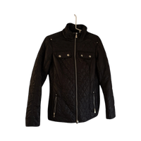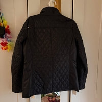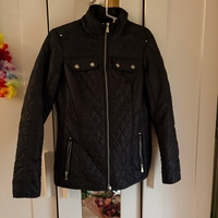 Lightweight quilted jacket with zip pockets and blue printed lining.