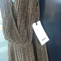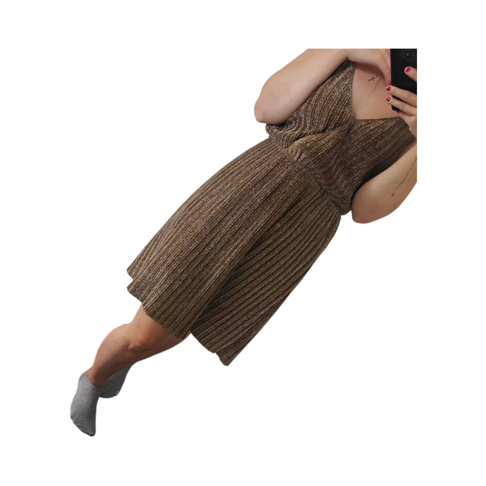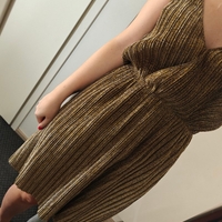 V-mallinen juhlamekko ohuilla olkaimilla, pliseerattu helma.