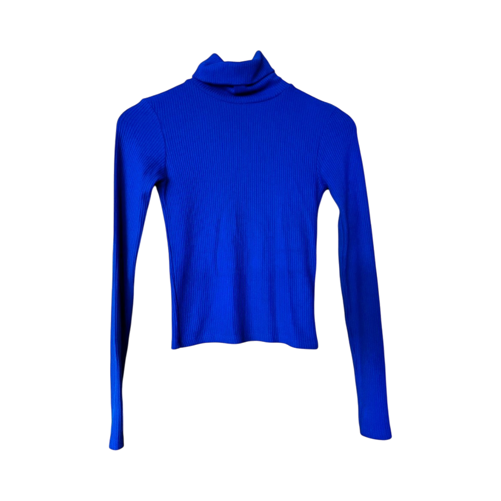 Sininen ribbineulepaita, poolokaulus, koko XXS. Käytetty kerran