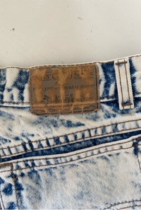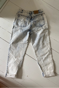 Korkeavyötäröiset farkut, aidot vintage levikset. Erinomainen vintage-kunto. Sopiva 34/36. Acid wash, kasari.