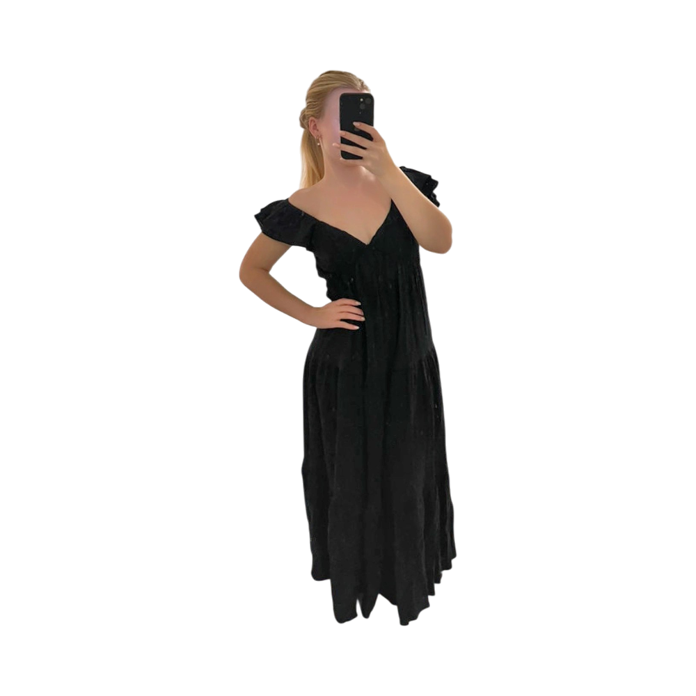 Bikbokin musta röyhelö maksimekko, koko xs, uusi, materiaali pellavan tapaista