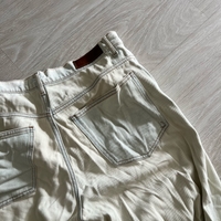 Vaalean siniset/kellertävät farkut. Käytetyt, mutta ehjät :) Kokolapussa lukee M.