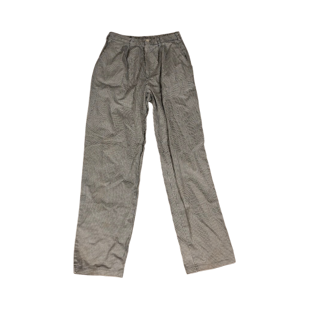 Suorat naisten housut, kuvioitu mustavalkoinen houndstooth-kuosi.