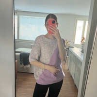 Käsintehty söpö neule! 💜 Ostettu kirpparilta alun perin, joten materiaalista ja koosta ei ole tietoa. Mitat olka-olka 59 cm, olka-helma 61 cm, hiha 14 cm. Veikkaan materiaalin olevan puuvilla-tekokuitusekoitetta, on pehmeää.