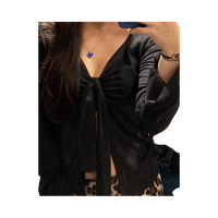 Pitkähihainen toppi, edessä solmittava yksityiskohta.