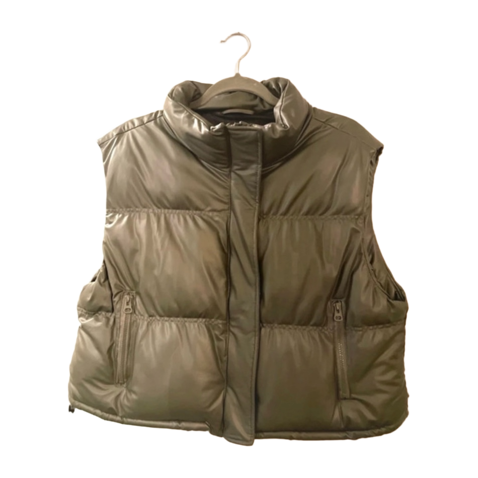 Erittäin hyväkuntoinen FB Sisterin tummanvihreä tekonahkainen toppaliivi. Koko XL, vastaa parhaiten kokoa L. Pyydä mittoja tarvittaessa. Alhaalla kiristysnyörit molemmin puolin. Pesulaput leikattu irti. Eläintalous!