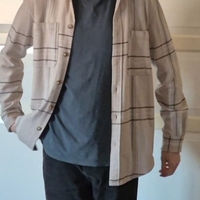 Beige ruudullinen overshirt, napit edessä, rennon istuva.