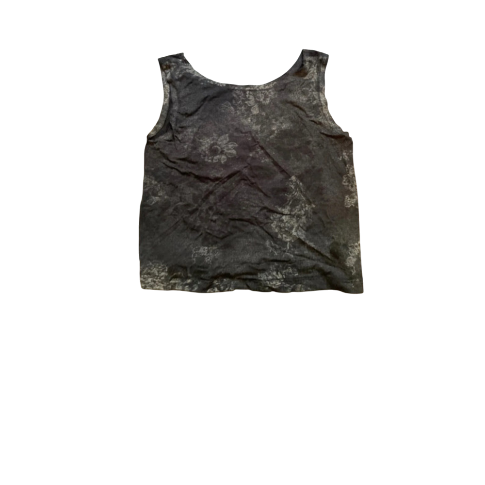 Hihaton musta toppi, kevyttä kangasta, kukkakuvioita.