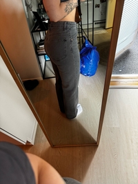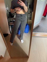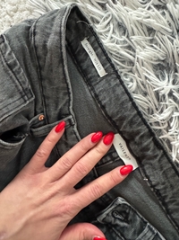 Naisten harmaat suoralahkeiset farkut, koko 28. Korkeavyötäröiset. Istuu vähän kuin Levis ribcage, mutta malli on Vailentin. Käytän yleensä kokoa S ja farkuista vaihdellen W26/27/28. Olleet pari kertaa töissä päällä, ihan uudenveroiset