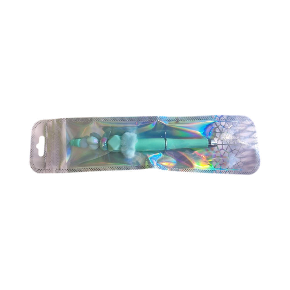 Koristeellinen turkoosi kynä/avaimenperä, pehmeä hapsu koristeella.