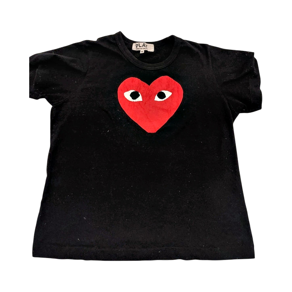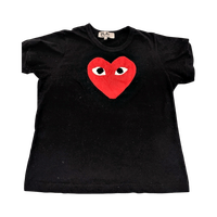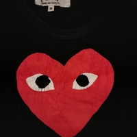 T-paidan sydän kuvio kulunut pesun takia. Paita muuten näyttää kivalta ja on hyvässä kunnossa.