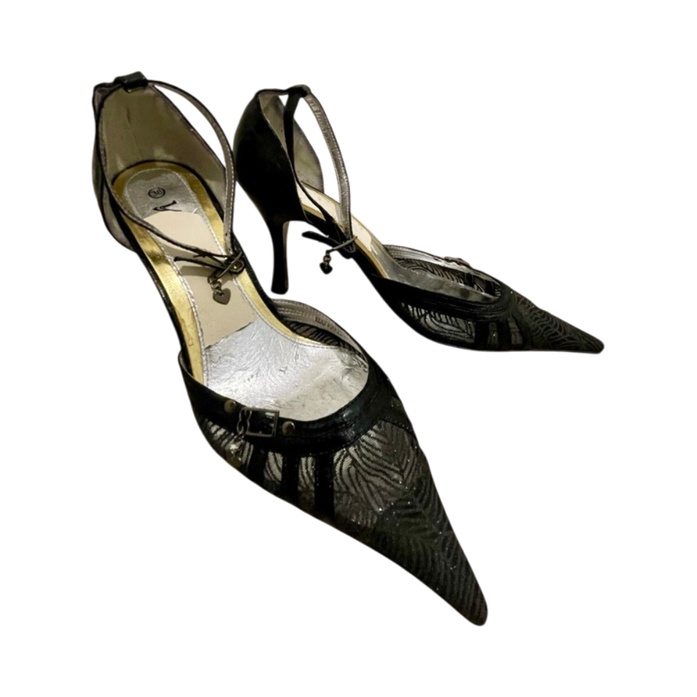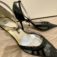Sirot mustat avokkaat, kärjelliset ja ohuella korolla. Kitten heels. Koko 38.