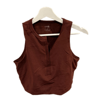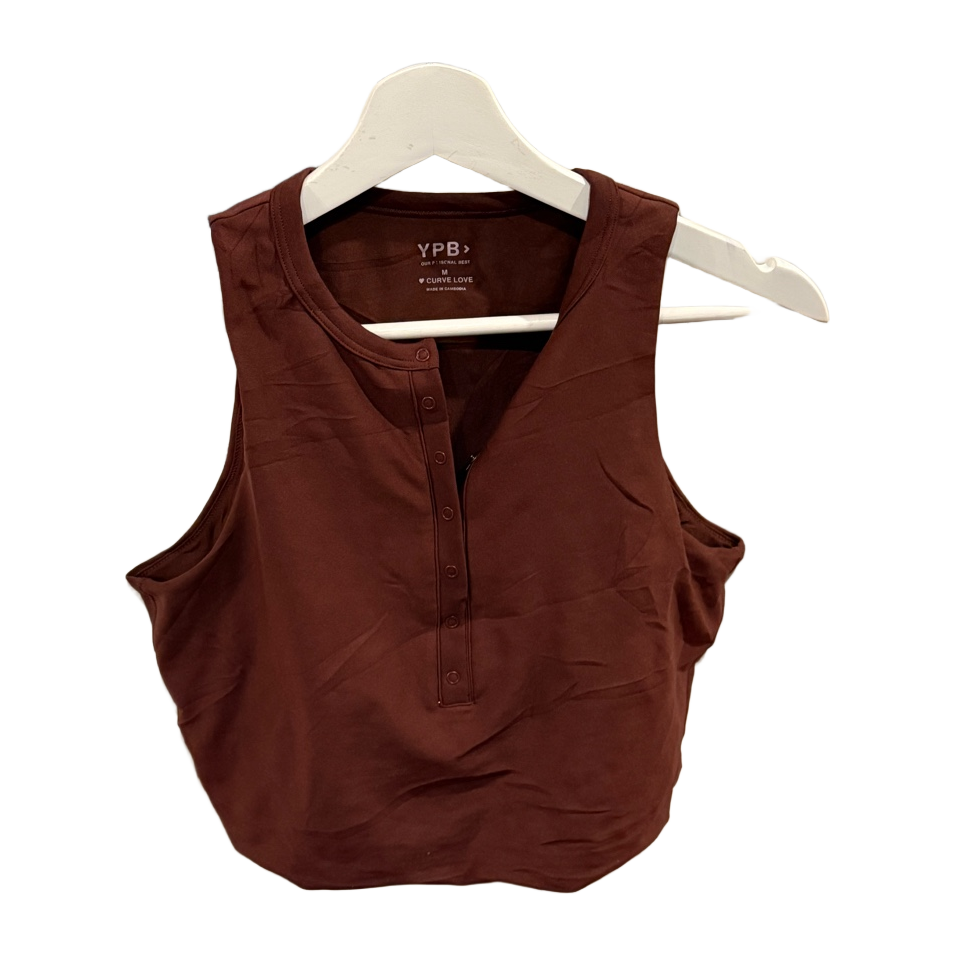 Brown sleeveless top with buttons