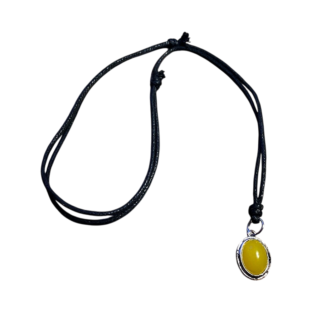 Kaulakoru kauniilla keltaisella kivellä, liukusolmut joista voi säätää pituuden itselle sopivaksi