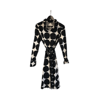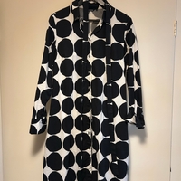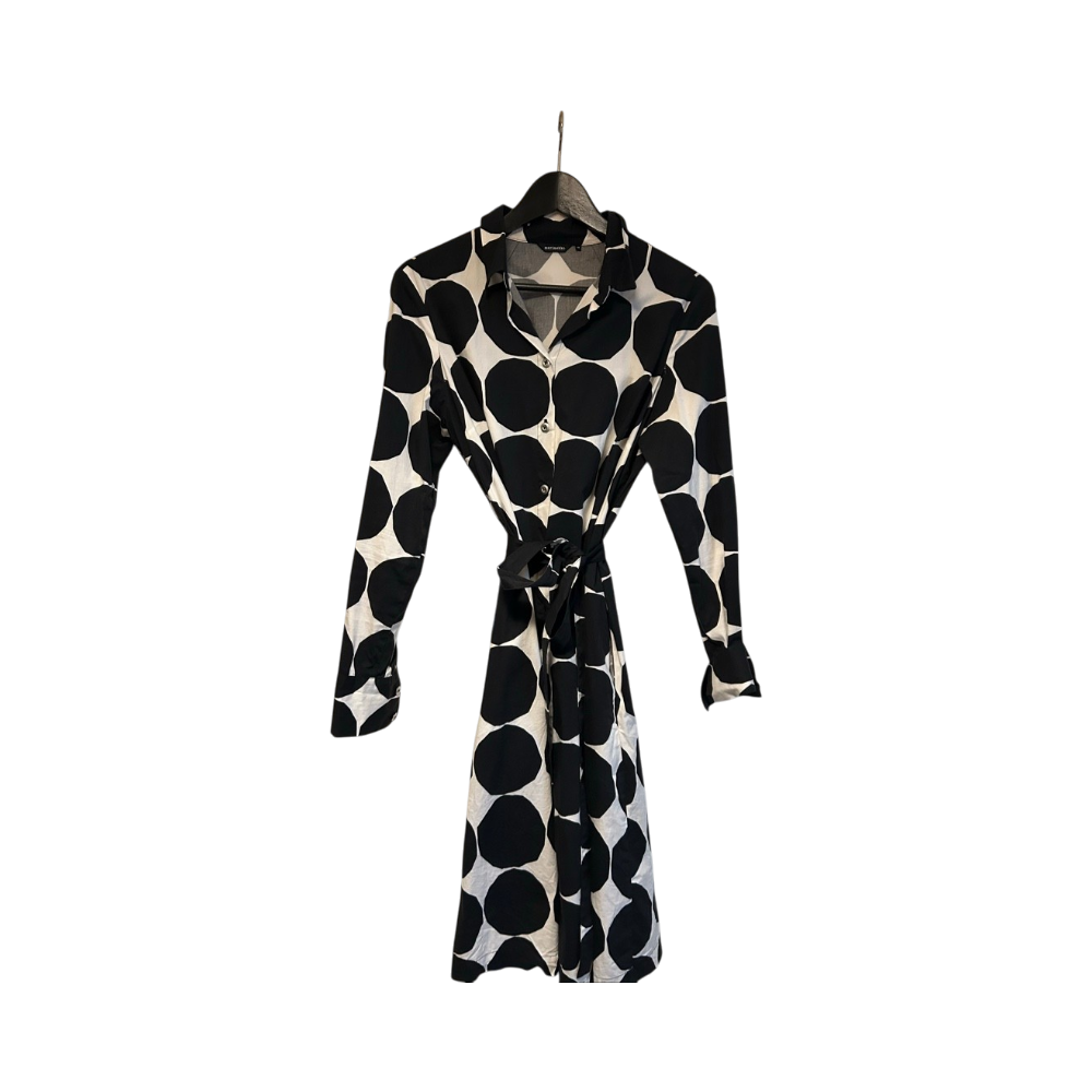 Mustavalkoinen nappiolkaiminen mekko, vyö mukana