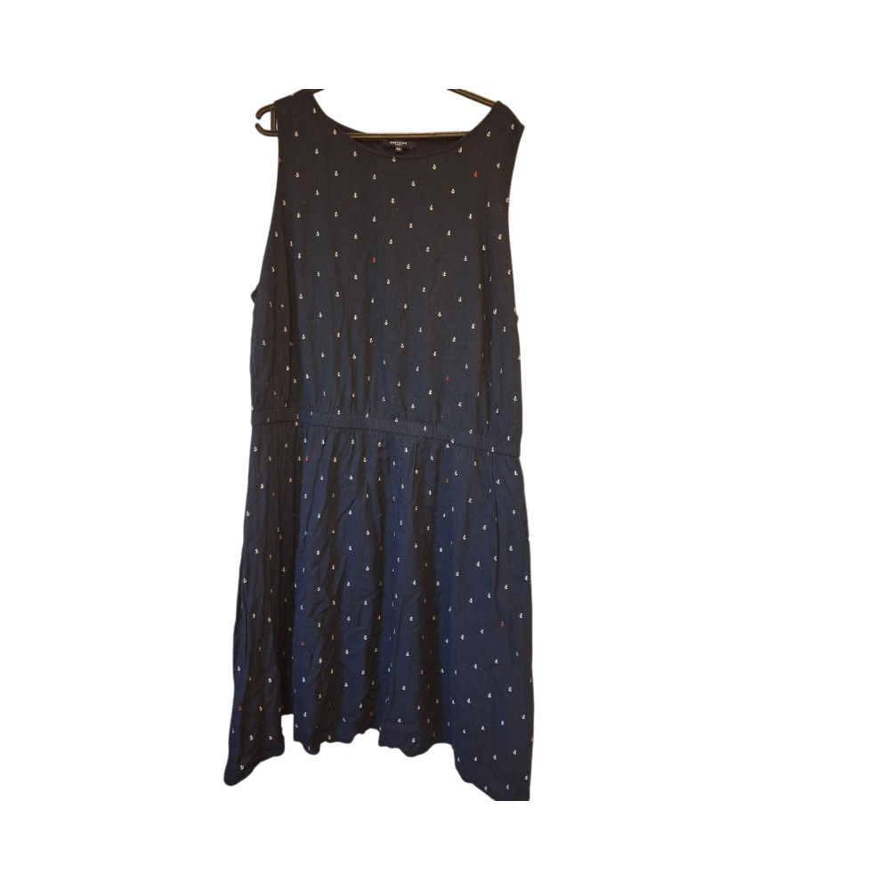 Tom Tailorin tummansininen mekko koko 50, kai-kai 62cm. 100% viskoosia. Vähän käytetty. Kissatalous, poistan enimmät karvat ennen lähetystä.