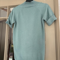 Turkoosin/sinisen sävyinen lyhythihainen pooloneule. Hyväkuntoinen, hieman pörröiseksi mennyt. Kokolappu puuttuu, sopii parhaiten XS-S.