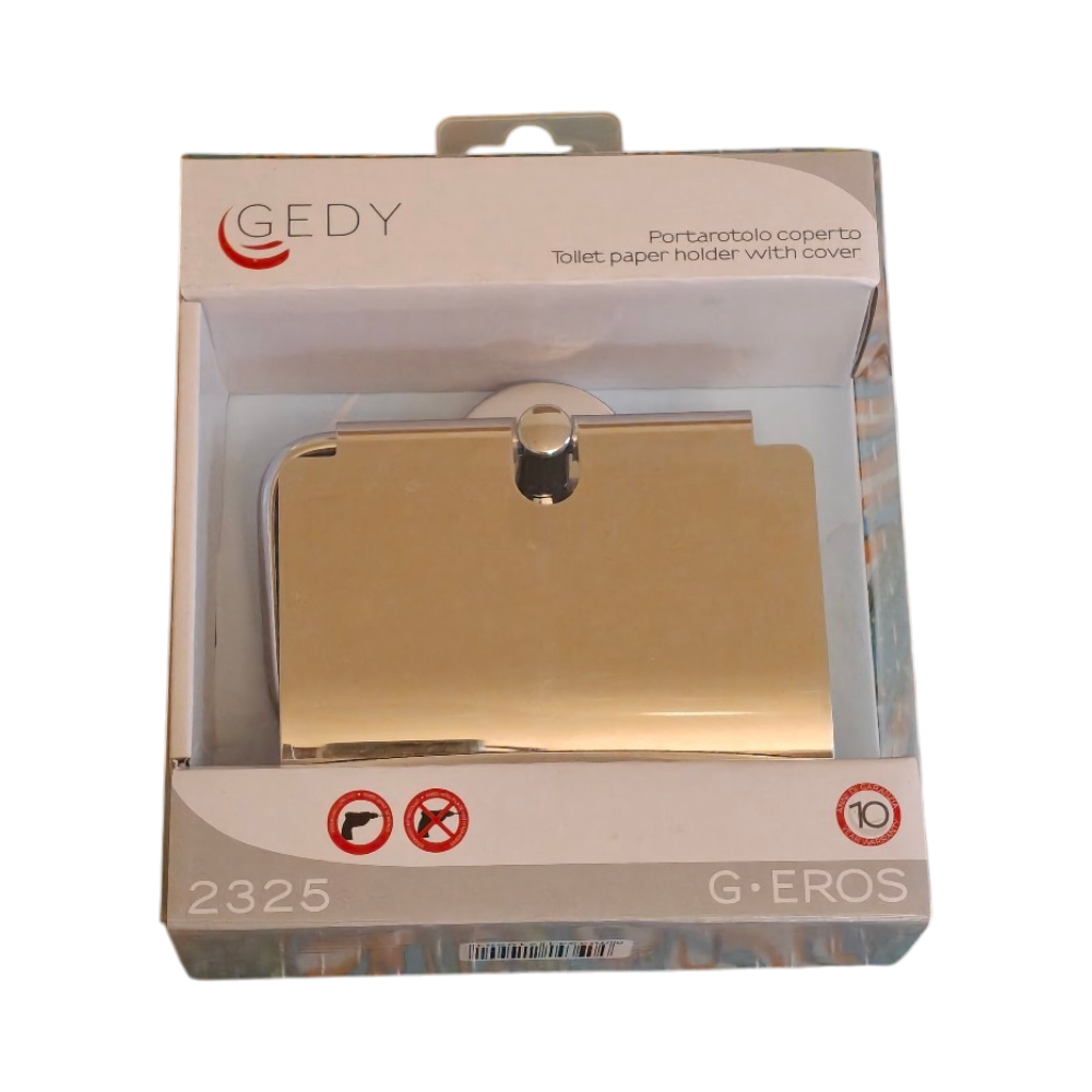 Käyttämätön wc-paperiteline suojakannella, uusi pakkauksessa.