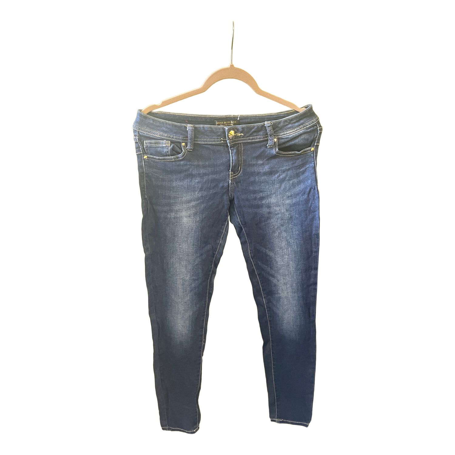Blue denim jeans with decorative stitching on the back pockets. Size 48.