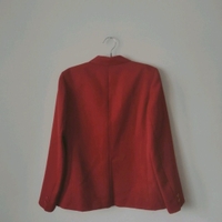 Punainen bleiseri. Villaa. Mitat: rinnanympärys 88, vyötärö 96. Kuivapesu.