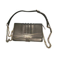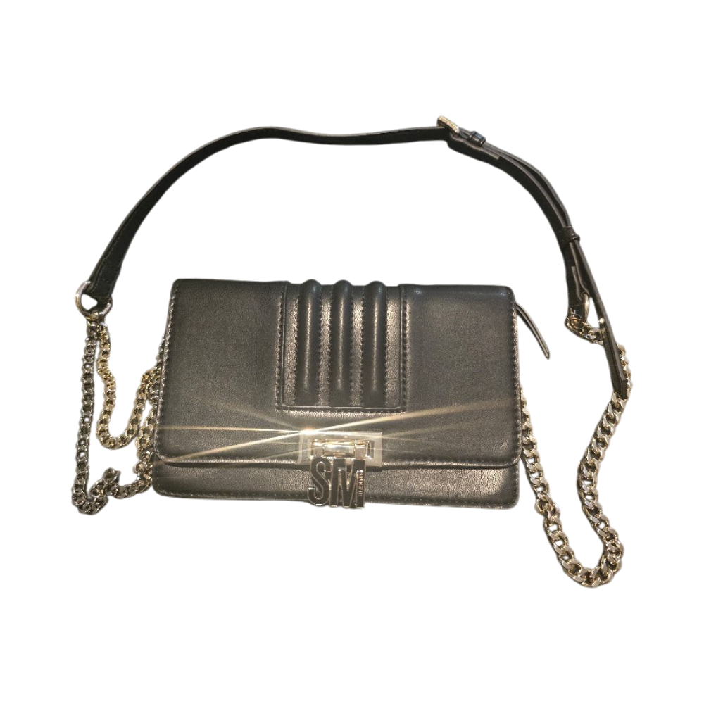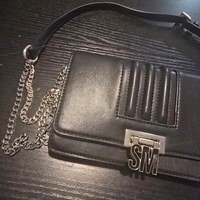 Käyttämättömäksi jäänyt steve madden pikkulaukku, korttipaikat 6 kortille. Koko 12 x 19 cm, paksuus n. 3,5 cm. Säädettävä olkahihna, toisen puolen ketjuista toinen kultainen, toinen harmaa, pieniä painaumia löytyy laukusta. Dustbag löytyy.