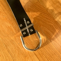 Leveä musta vyö hopeanvärisellä U-soljella.