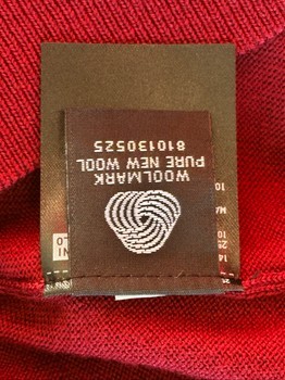 Red round neck sweater made of pure new wool. Features the Woolmark logo. Size S.