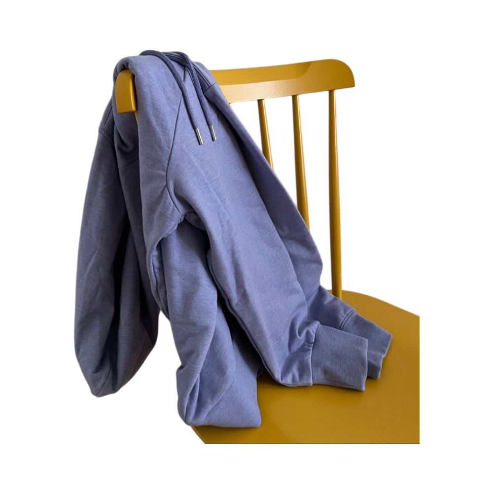 Blue/purple hoodie. Soft and comfortable. I have cut the tag away but it is unused. Only tried on once and thought this color doesn’t fit me so well.