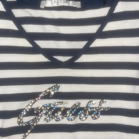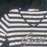Stylish and comfortable striped top with embellishments.