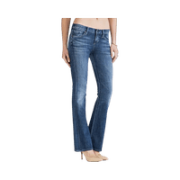 A timeless mid-rise bootcut silhouette designed to elongate the leg, especially flattering for petite proportions.