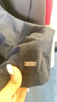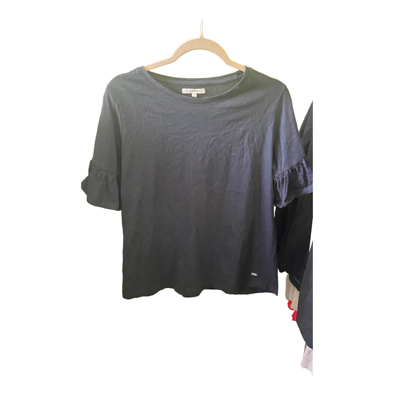 Black t-shirt with short ruffled sleeves. Made of 100% cotton. Size M.