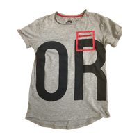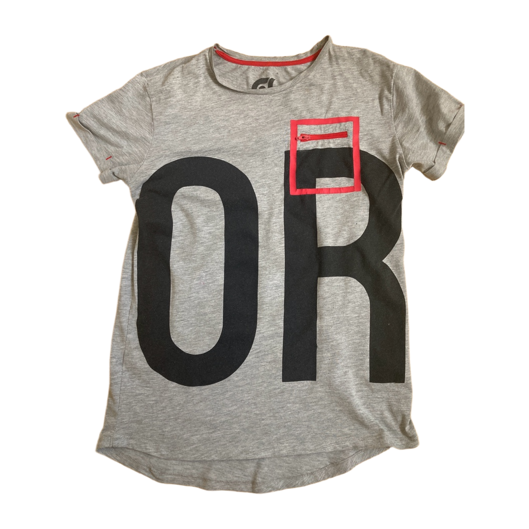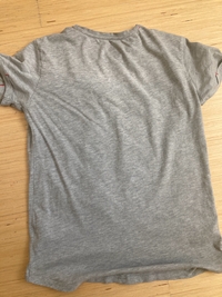Lasten harmaa t-paita. Merkkiä en osaa sanoa, mutta viimeisessä kuvassa näkyy kuva paidan sisäpuolelta jos joku tunnistaa. 😊 Kokomerkintä 146/152.