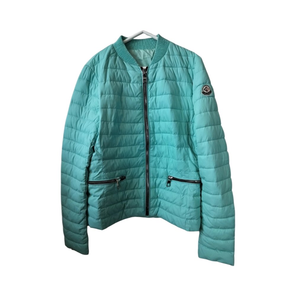Kevyt toppatakki, turkoosi väri, vetoketjusomisteet.
