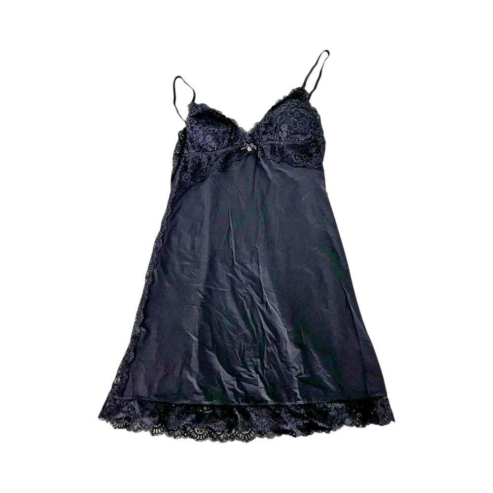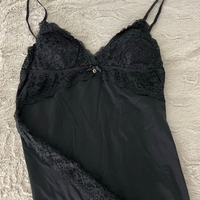 Elegantti musta silkkiyö pitsiyksityiskohdilla.