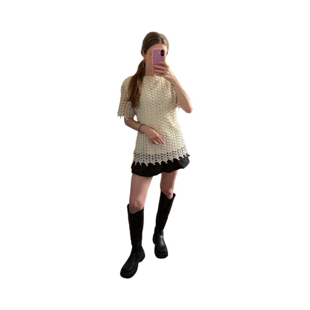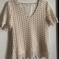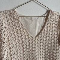 Ihana kermanvaalea paita punotusta materiaalista. Vuori alla. Koko L. Itse olen käyttänyt tätä selkäpuoli edessä kuten kuvissa ☺️ Ei vikoja.