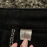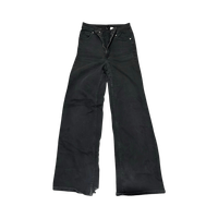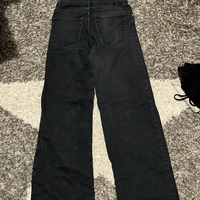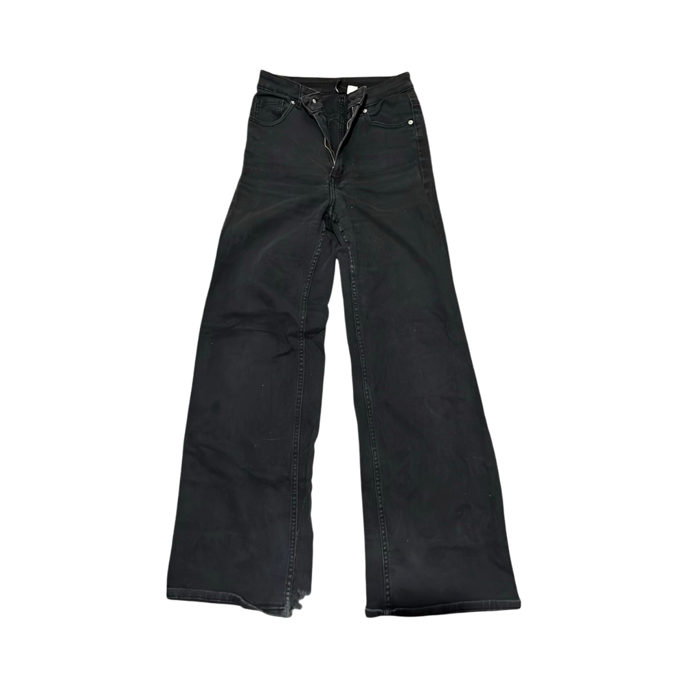High-waisted, leveät lahkeet, käytetyt reunat lahkeissa.