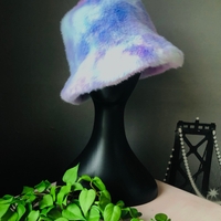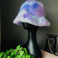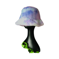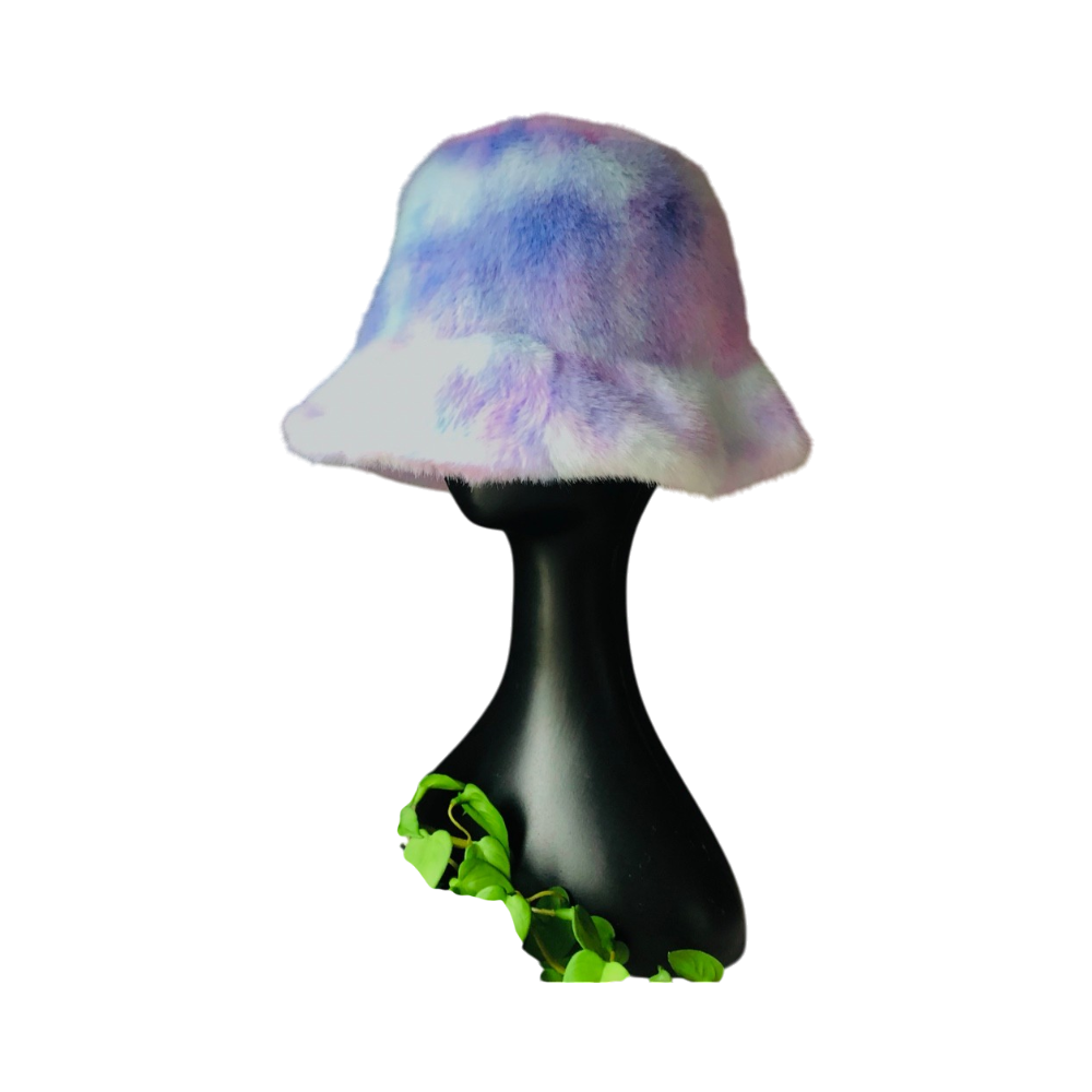 Pastellinsävyinen tekoturkislierihatun bucket-malli.
