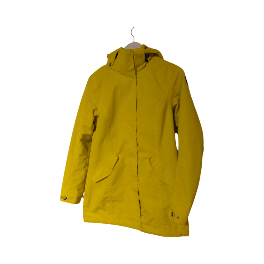Välikauden parkatakki hupulla, kevyt vuori (puoleen väliin selkää ja hupussa) koko 36. Takin helmassa kiristysnyöri, takissa kaksi nepparitaskua ja povitasku. Kangas pitää hieman kosteutta. Takkia käytetty ahkerasti, mutta se on täysin ehjä, siisti ja puhdas. Koiratalous. Voidaan sopia myös noudosta akselilla Kerava-Korso.