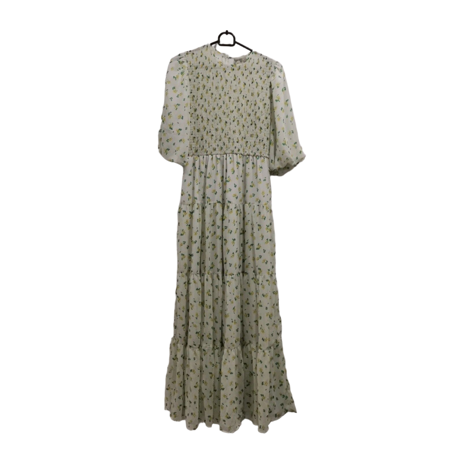 Pitkä kesäinen mekko suloisilla yksityiskohdilla.