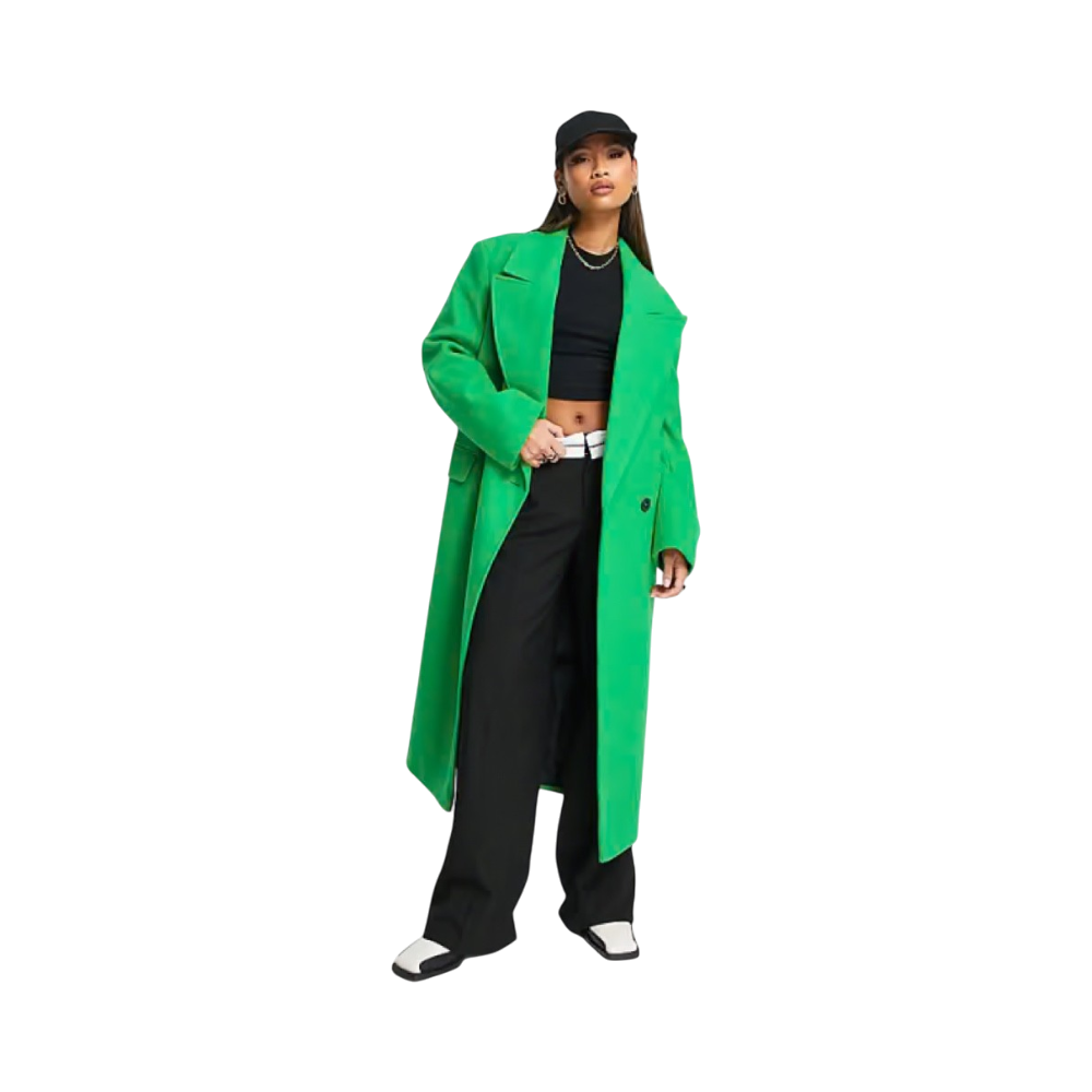 Vihreä pitkä villakangastakki