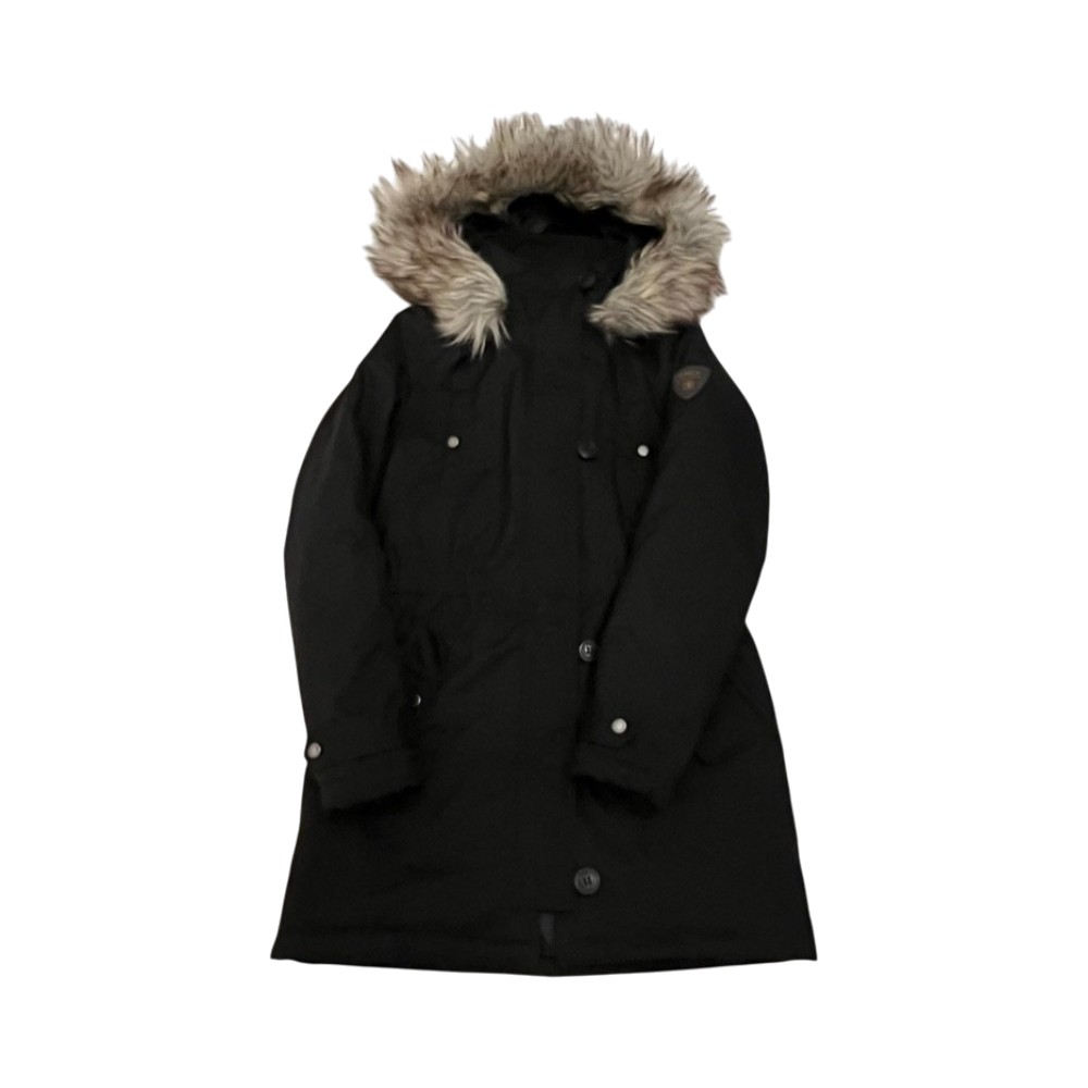 musta toppatakki, todella pientä käytönjälkeä, näkyy kuvissa en oo koittanu puhdistaa! ollut kaapissa koska itselle liian iso
