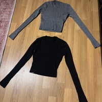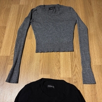 Even&Odd merkin musta ja harmaa neulepaidat koossa XS. Joustinneulos materiaali, viskoosi ja polyamidi, venyy siis.