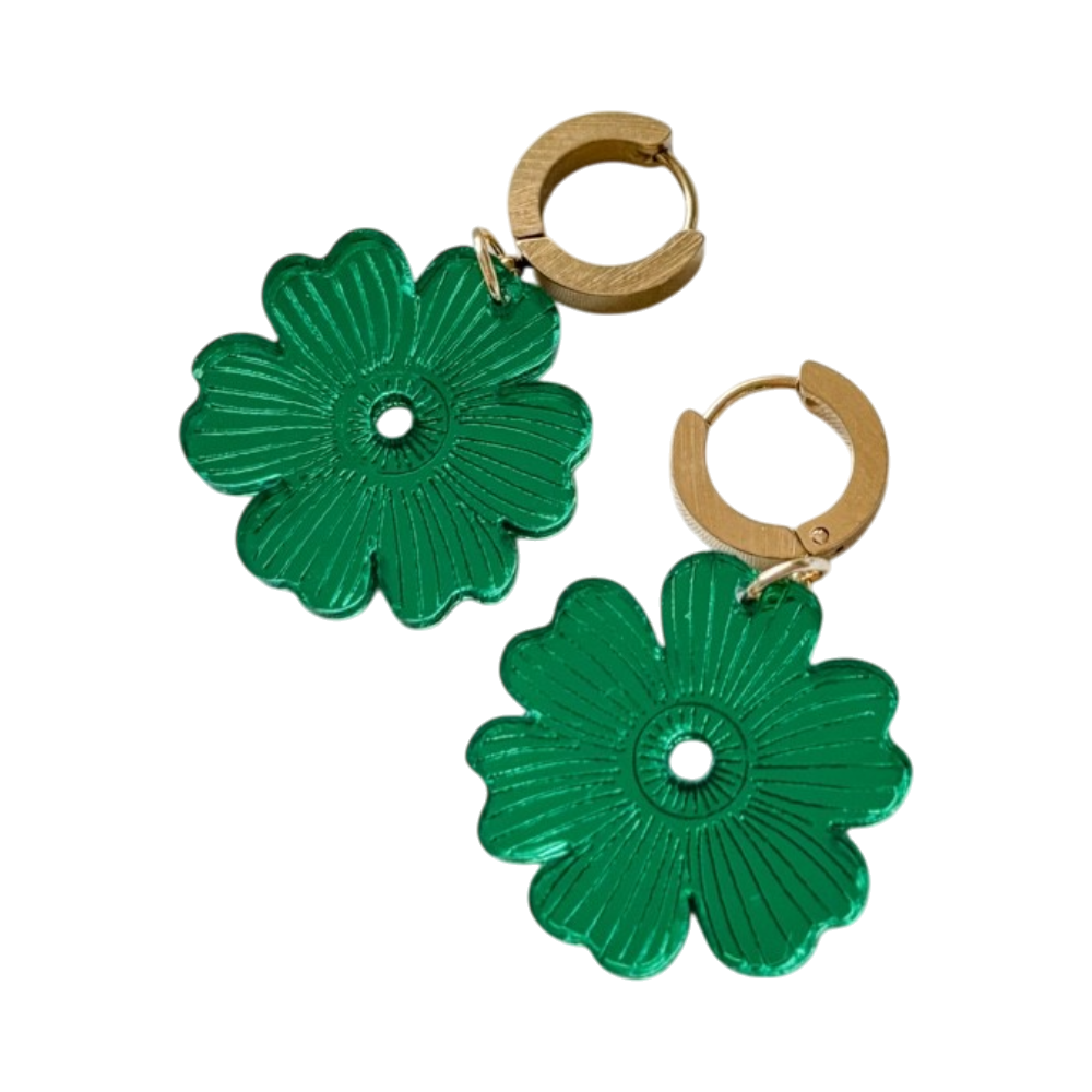 Keveät kukkakorvakorut, kullanvärisellä renkaalla. Pituus 4cm.