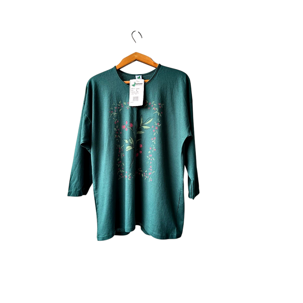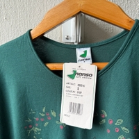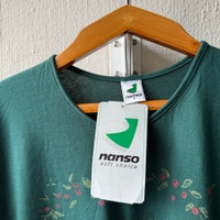 Nanson vihreä vintagepaita. Koko S, kainalo-kainalo 57 cm ja pituus 74 cm. Väljä malli, vajaamittaiset hihat. Materiaali puuvillaa.