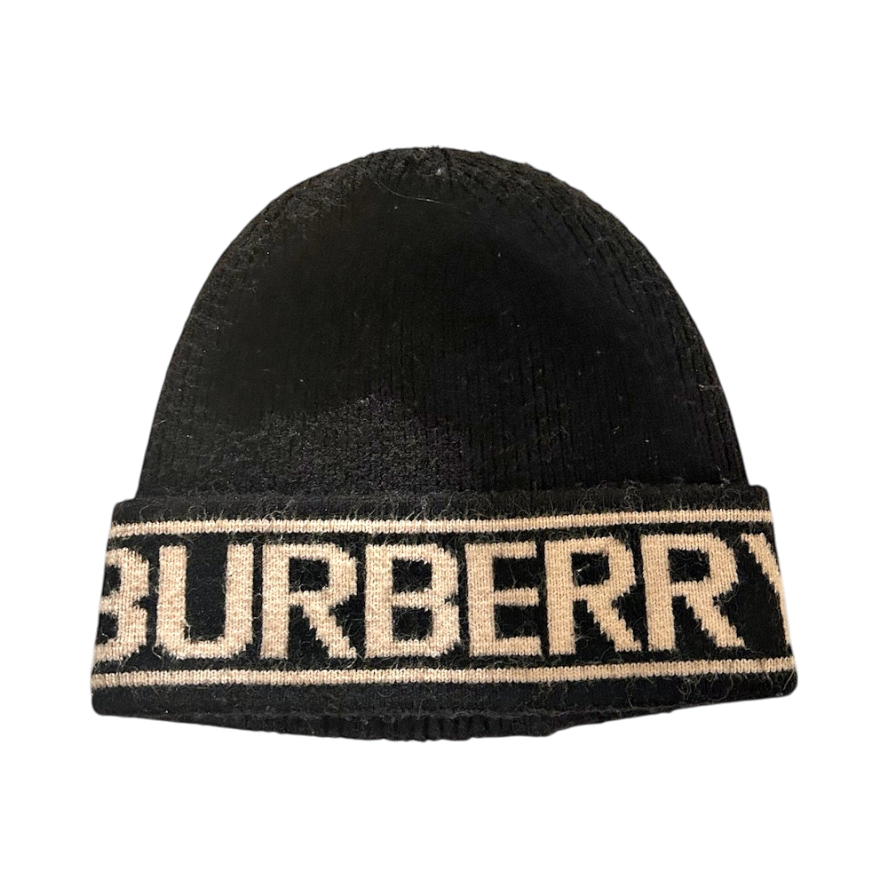 Tyylikäs musta villapipo Burberry-logolla.