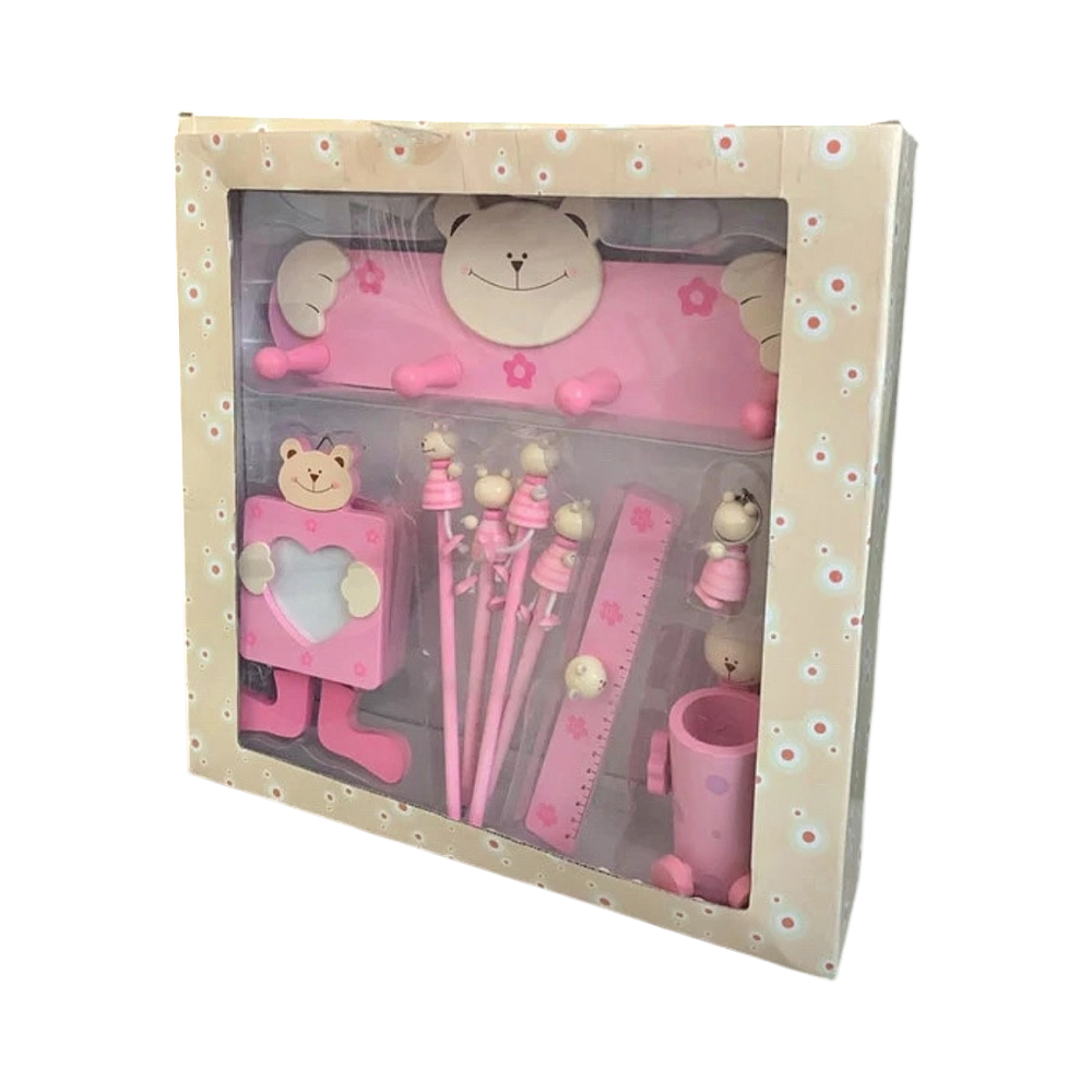 Lahjapaketti, jossa söpö vaaleanpunainen teema. Sisältää erilaisia tarvikkeita, kuten kyniä ja peilejä.Uusi , mutta vanha, joten ulkoinen paketti ei oo enää uudenveroinen