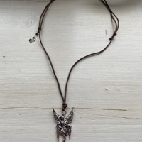 Söpö keijukaulakoru ruskealla ketjulla jossa liukusolmut, joista pystyy säätämään pituuden itselle sopivaksi